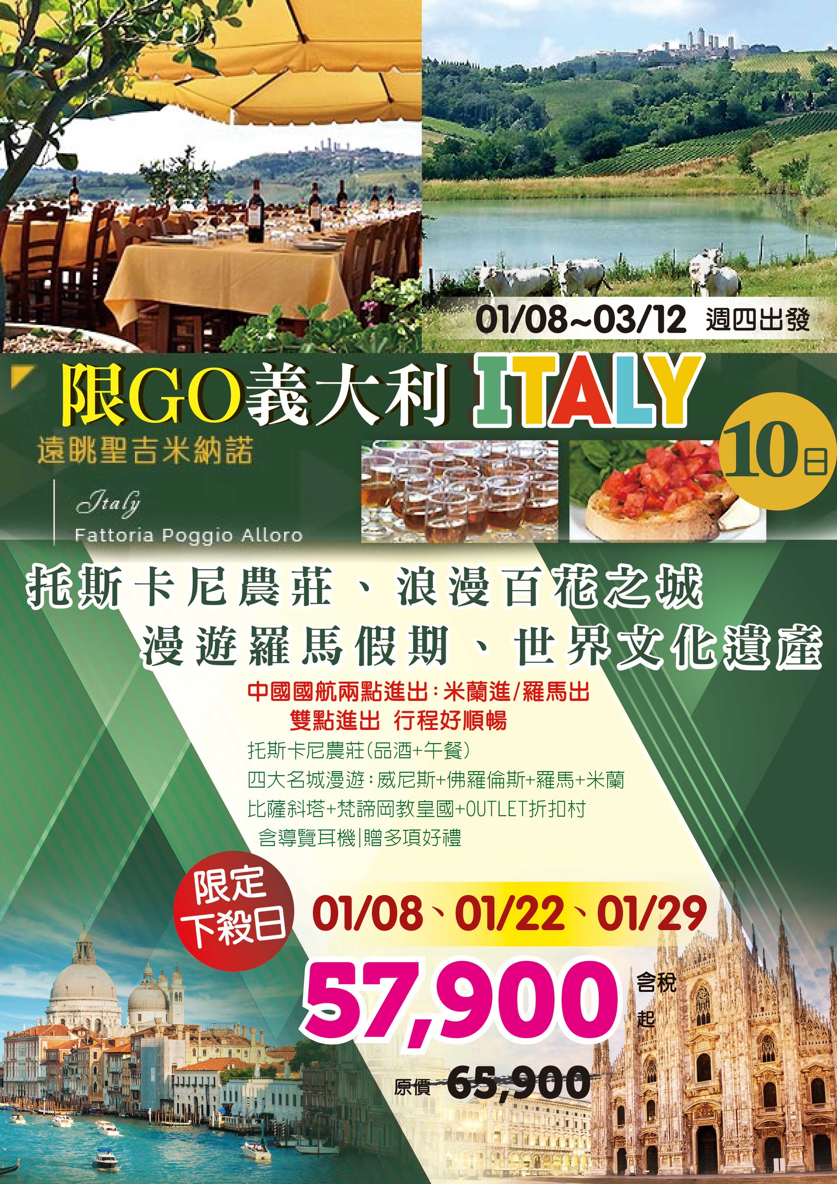 限GO義大利~托斯卡尼農莊、浪漫百花之城、漫遊羅馬假期、世界文化遺產10日
